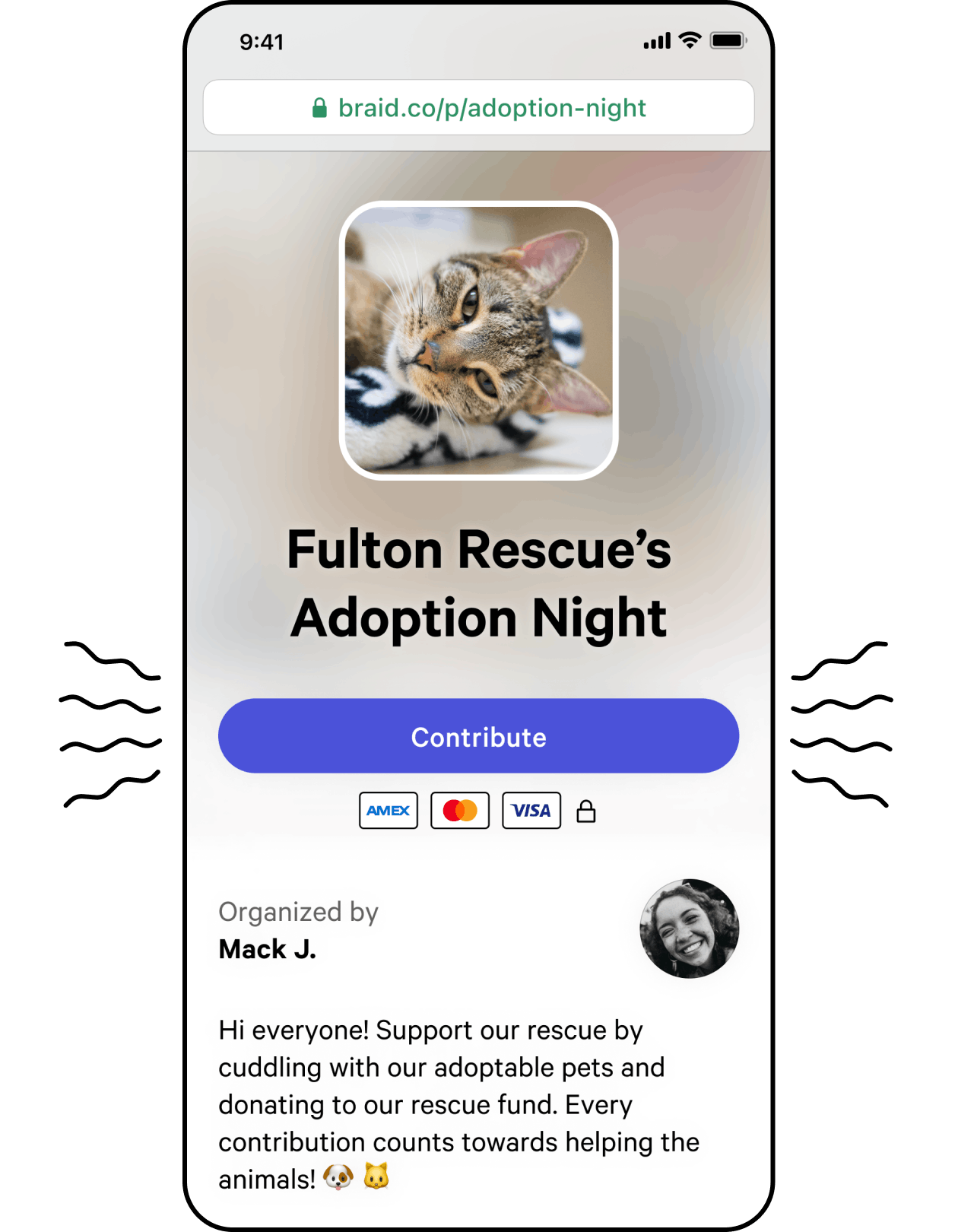Add custom text, and images to let contributors know what you’re collecting money for.