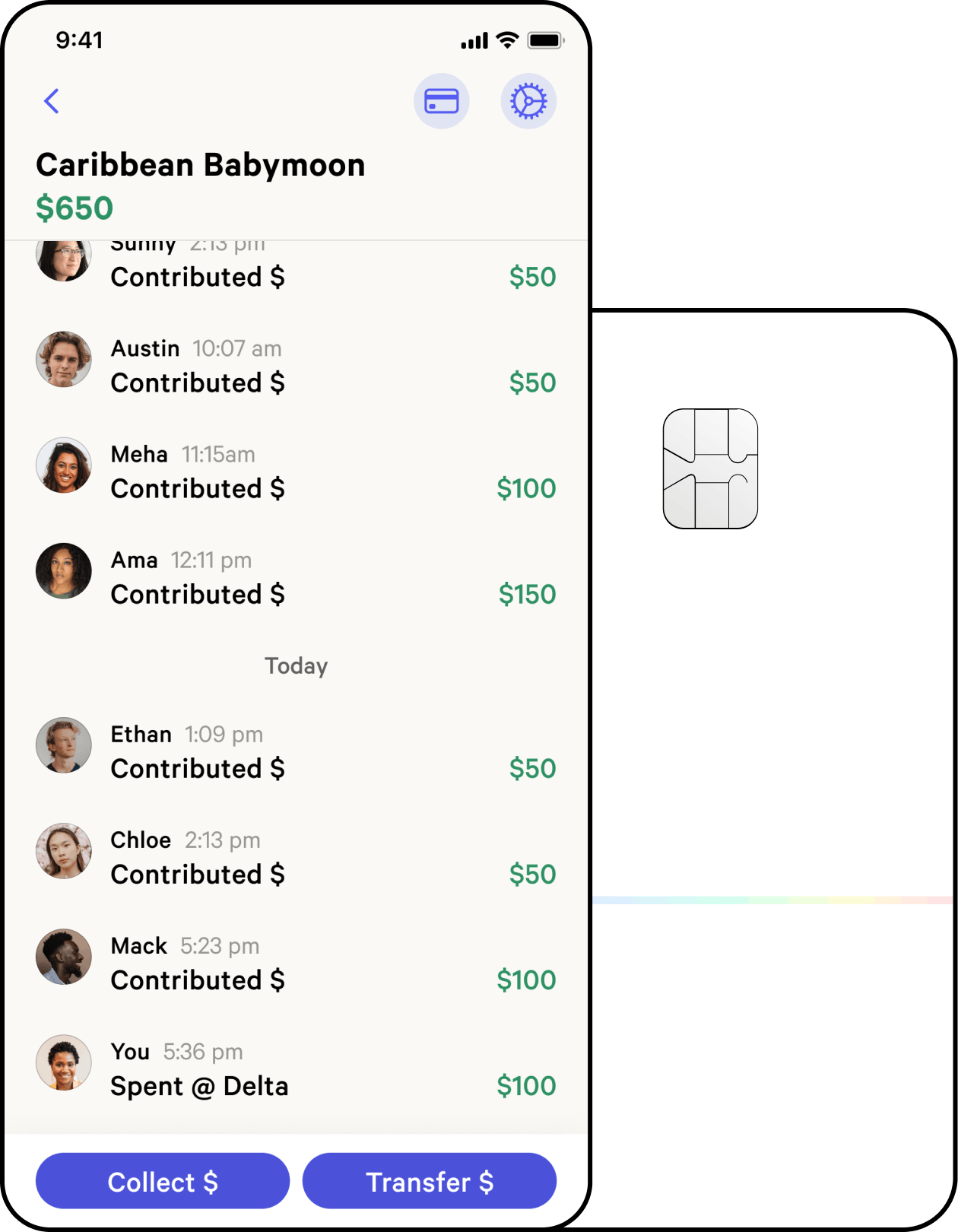 Use money pools to collect money for flights, excursions, transportation, and more. Or start saving for you babymoon in the pool.