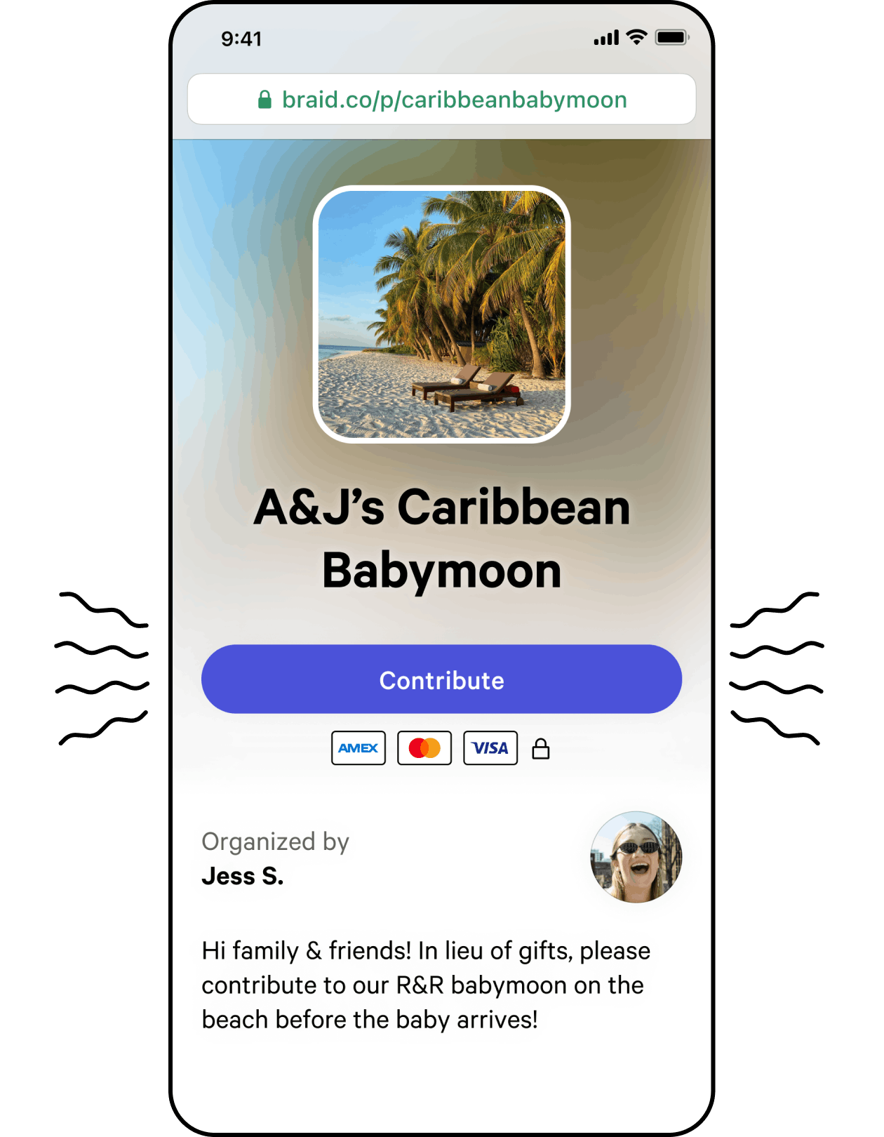 Braid is an easy way to pool money to plan, budget for, and take a babymoon. You can invite your partner or best friend to manage and spend the money with you.
