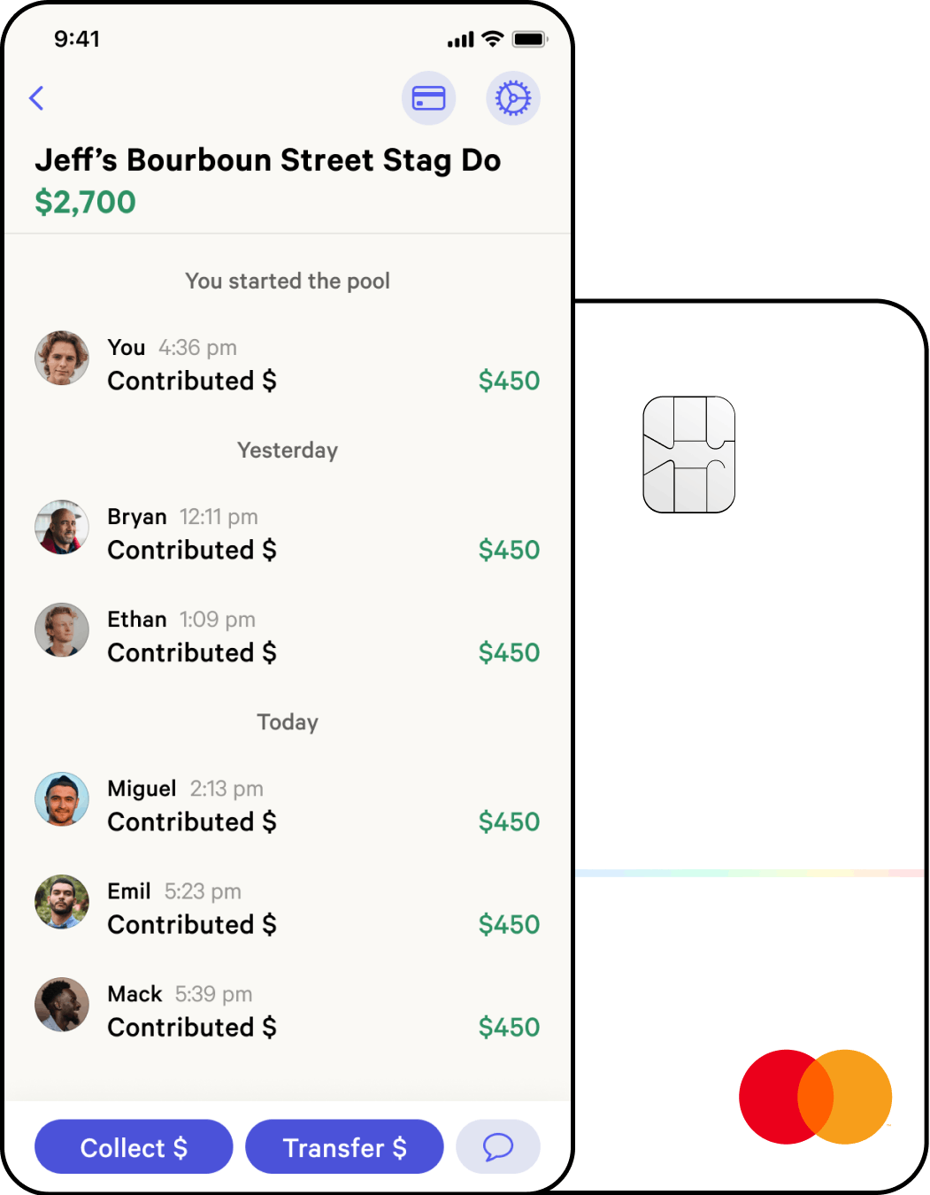 Get spending notifications from your pools, and freeze your debit card anytime in the app.