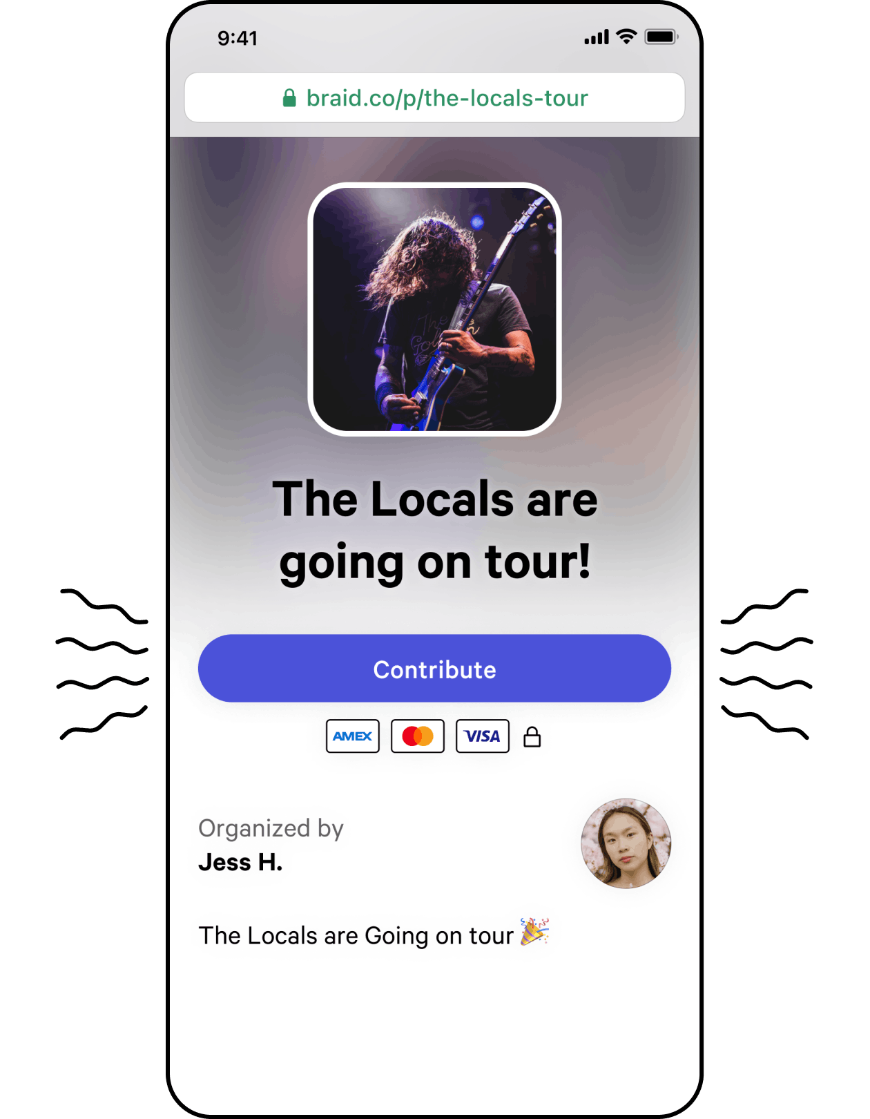 Band members and fans can contribute using the Pool Link. Contributors don't need a Braid account to contribute to your pool.