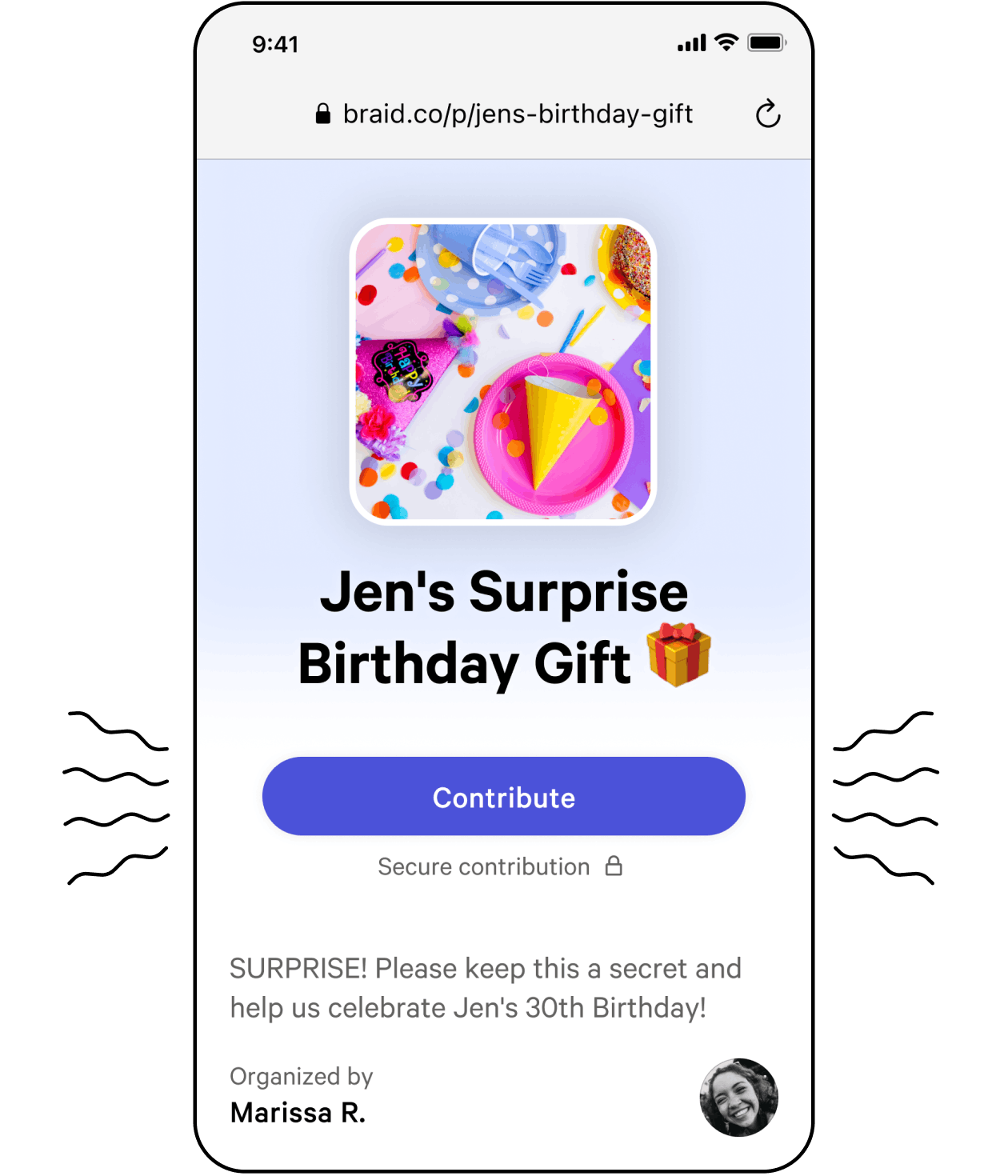 Collect money for a birthday fund, birthday fundraiser, surprise birthday party, gifts and more with Braid Money Pools.