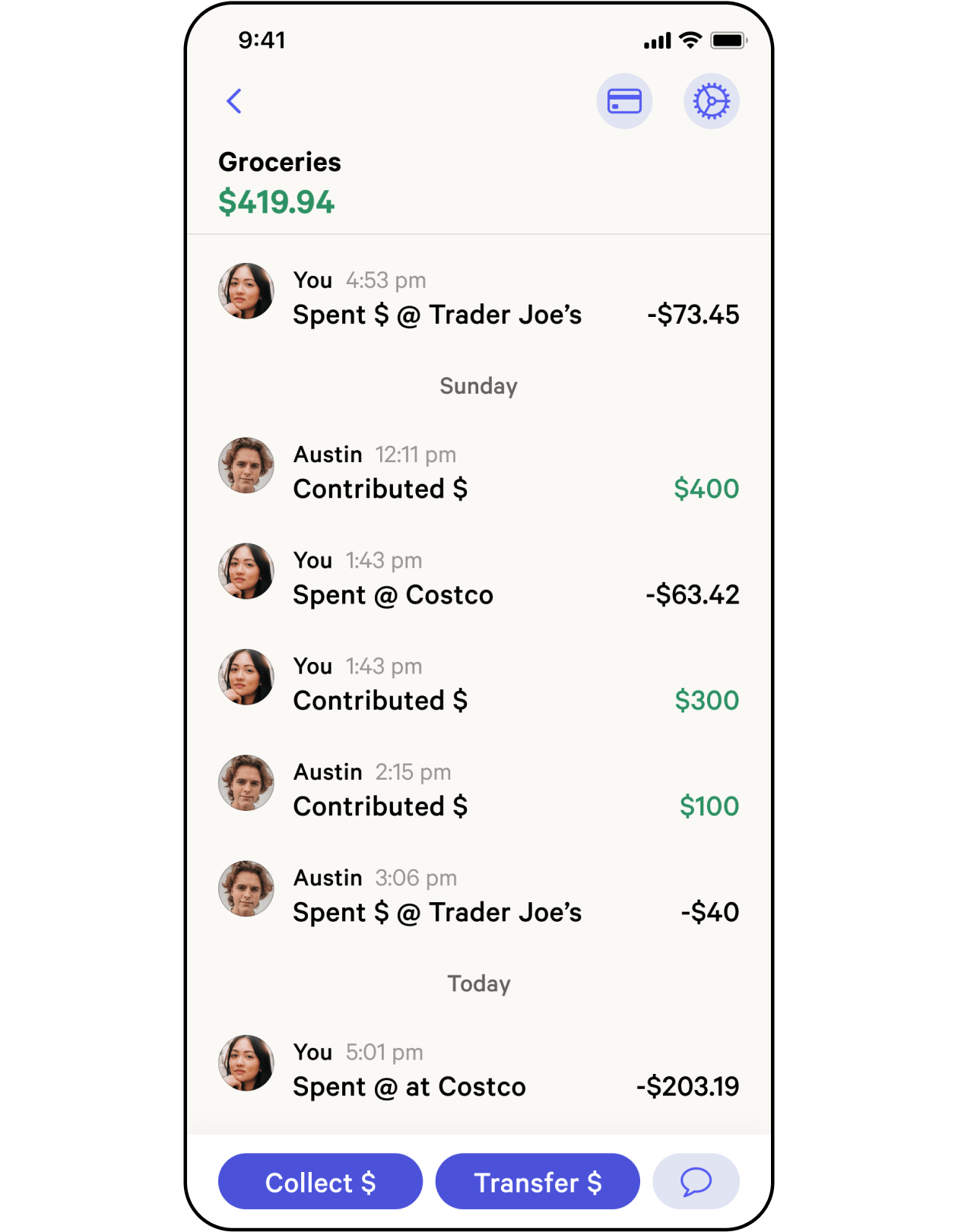 Create pools for “Groceries”, “Eating Out”, “Pet Care”, and more.
