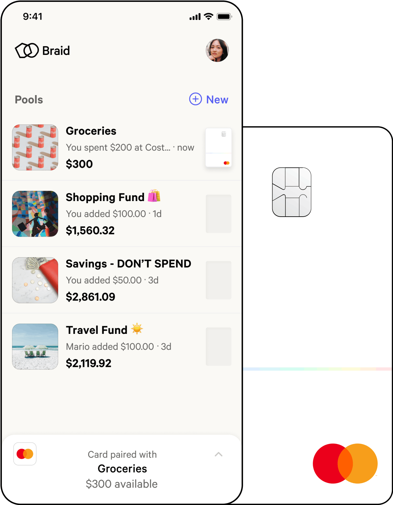 Keep your “cash envelopes” organized while spending by using the free Braid debit card that comes with every pool