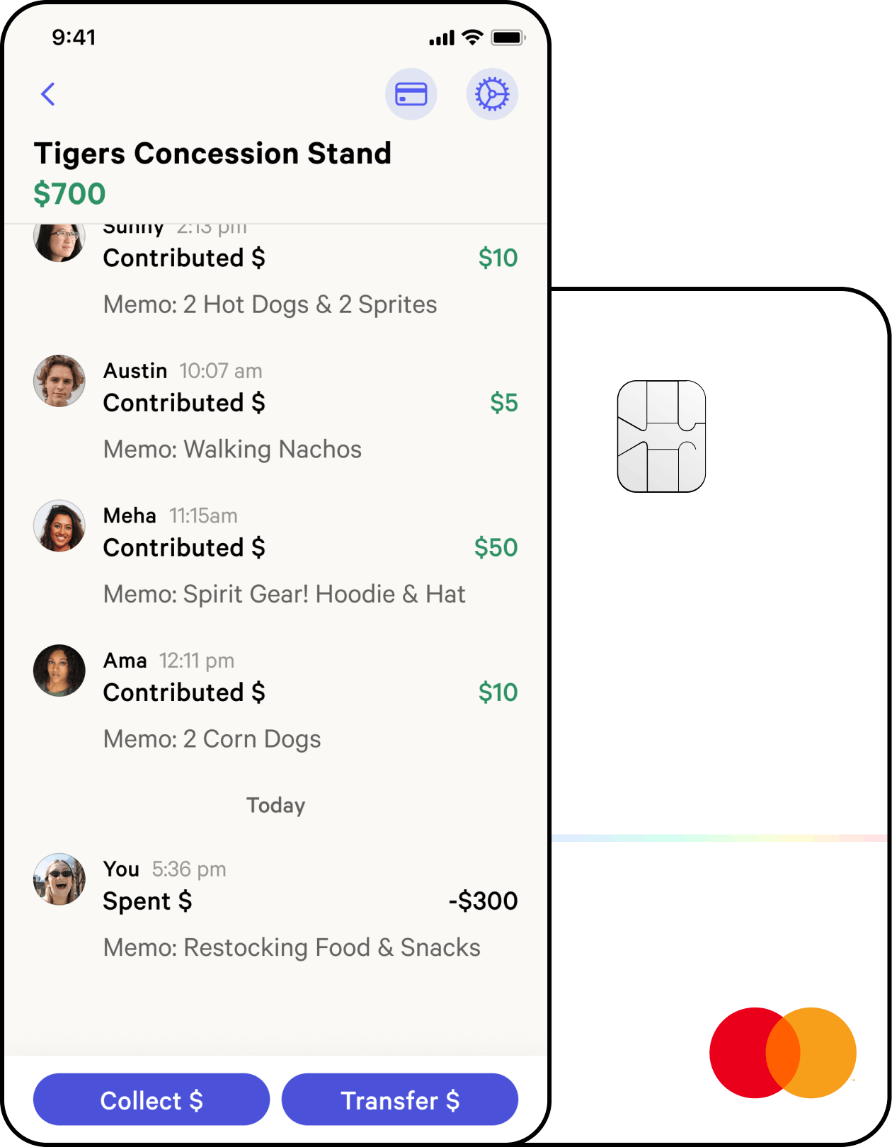 Create a pool to collect, manage, and spend money for concession stand expenses, like signage, supplies, food, merchandise, and more. Accept payments for menu and merchandise items directly into your pool on event days.