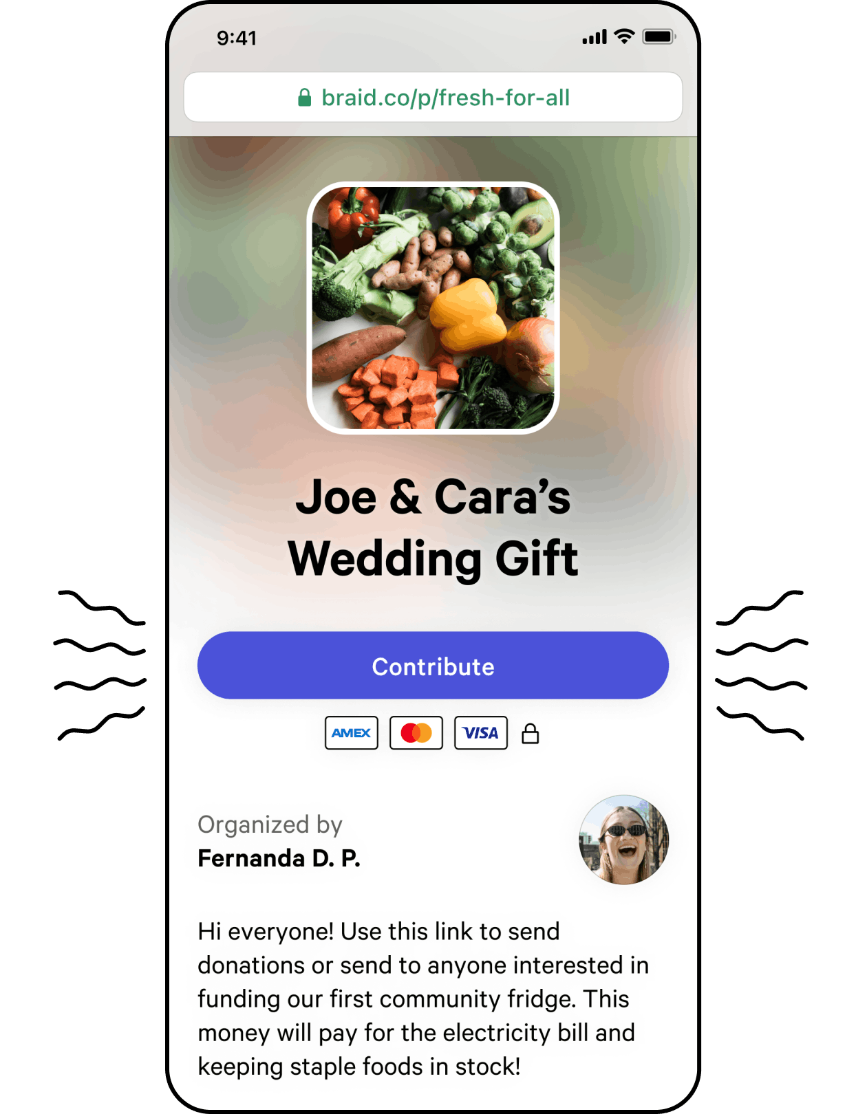 Anyone with a debit card can add money, and anyone with the link can support your fundraiser—even if they don’t have the Braid app.