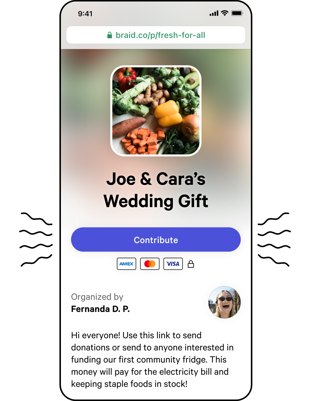 Anyone with a debit card can add money, and anyone with the link can support your fundraiser—even if they don’t have the Braid app.