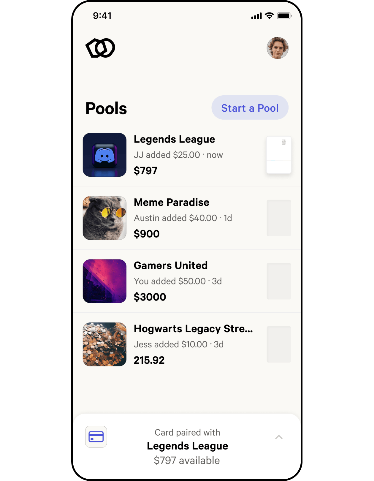 Get spending notifications from your pools, and freeze your debit card anytime in the app.