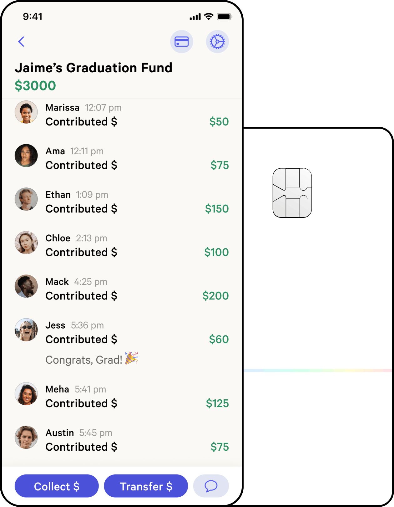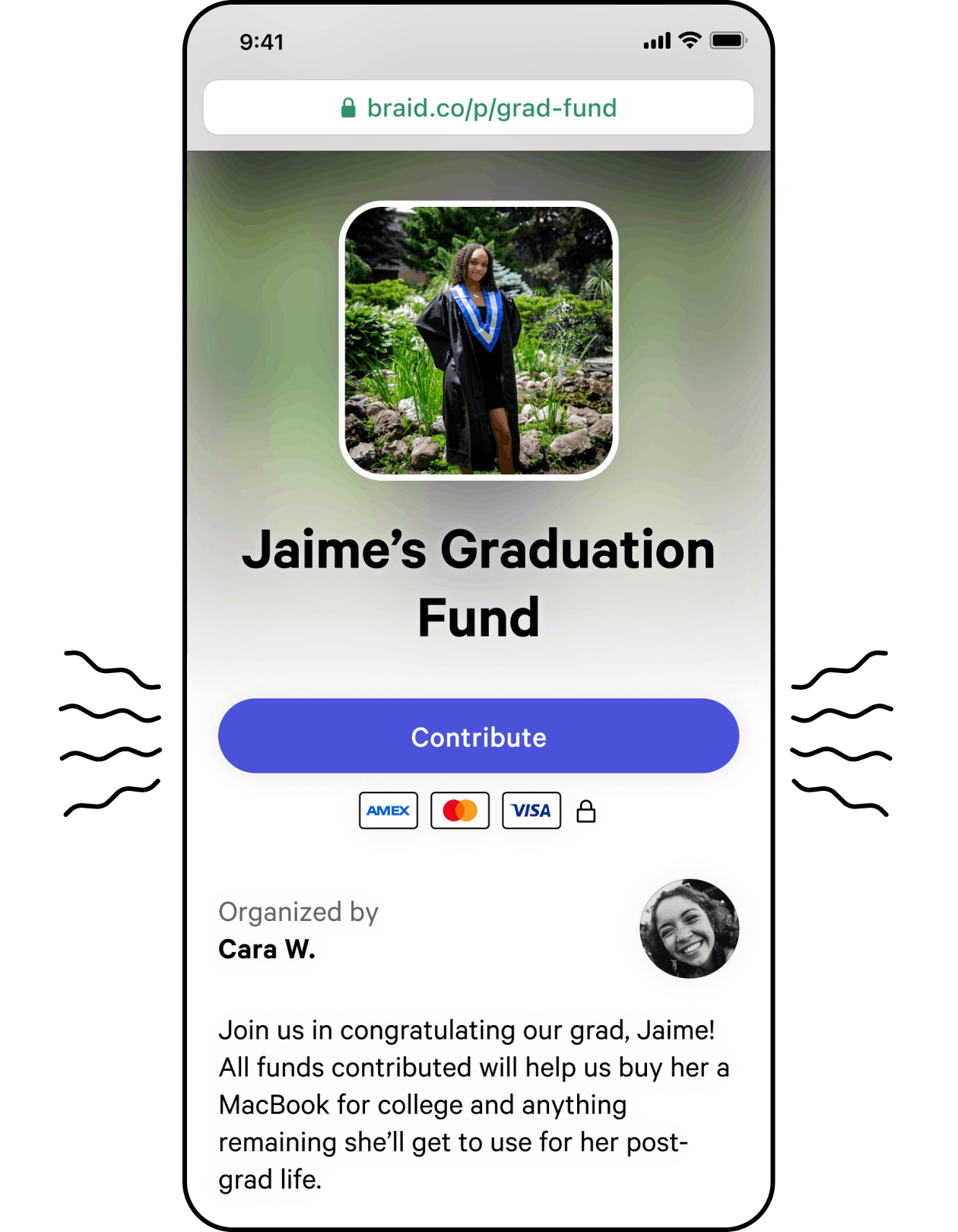 Collect contributions towards your college fund, post-grad trips, 529 plan, big-ticket graduation gift, moving out fund, and more!