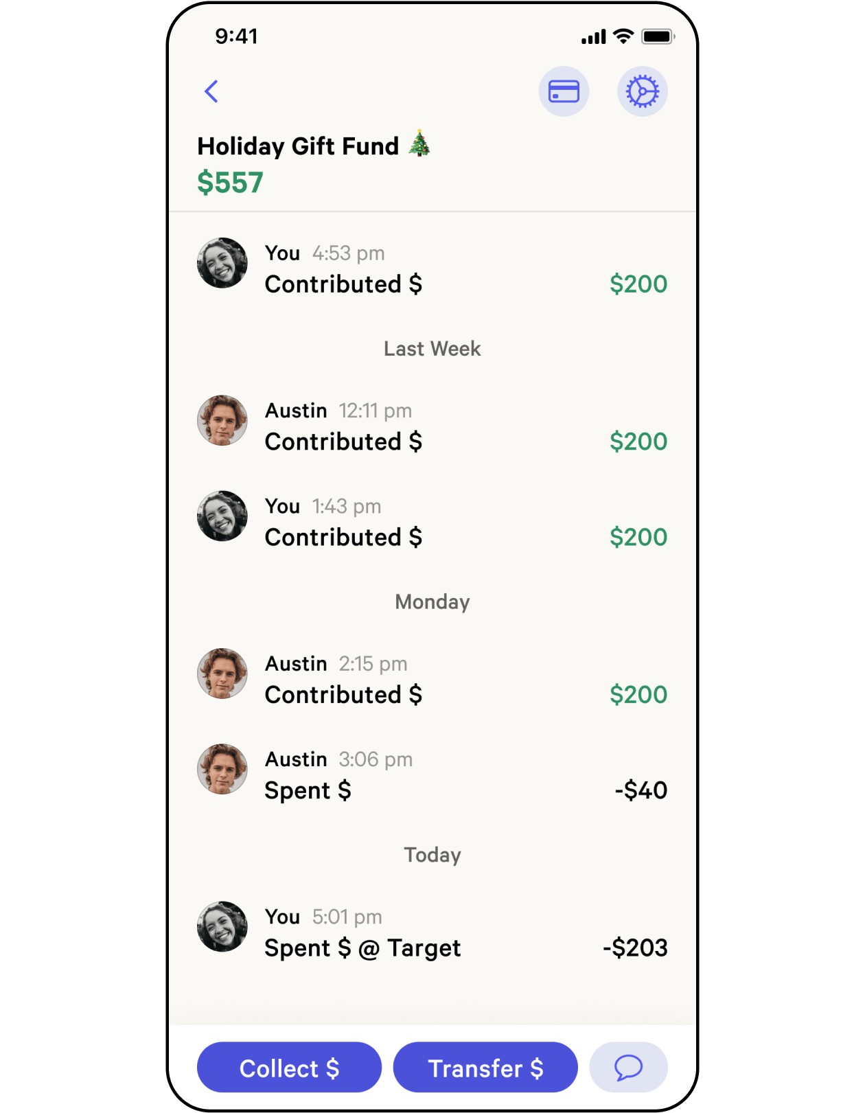 Get spending notifications from your pools, and freeze your debit card anytime in the app.