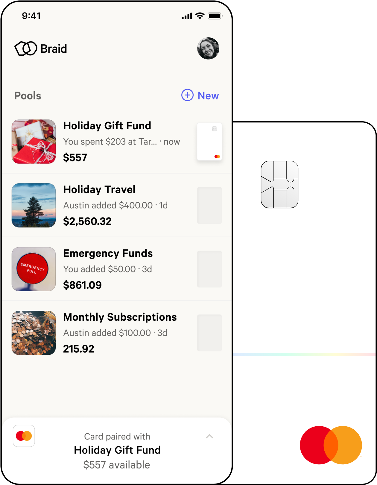 Looking for an easy way to create a holiday budget? Use Braid Money Pools to set aside money for your holiday shopping expenses like winter trips, Christmas gifts, and everything you need to make the season magical.