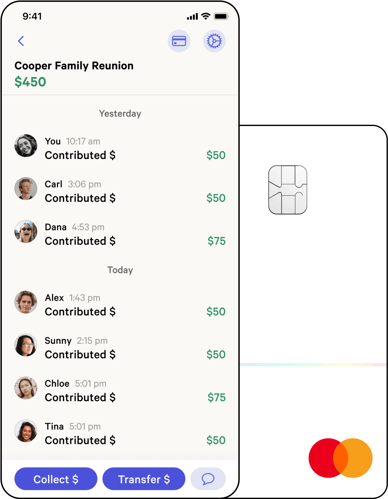 Get spending notifications from your pools, and freeze your debit card anytime in the app.