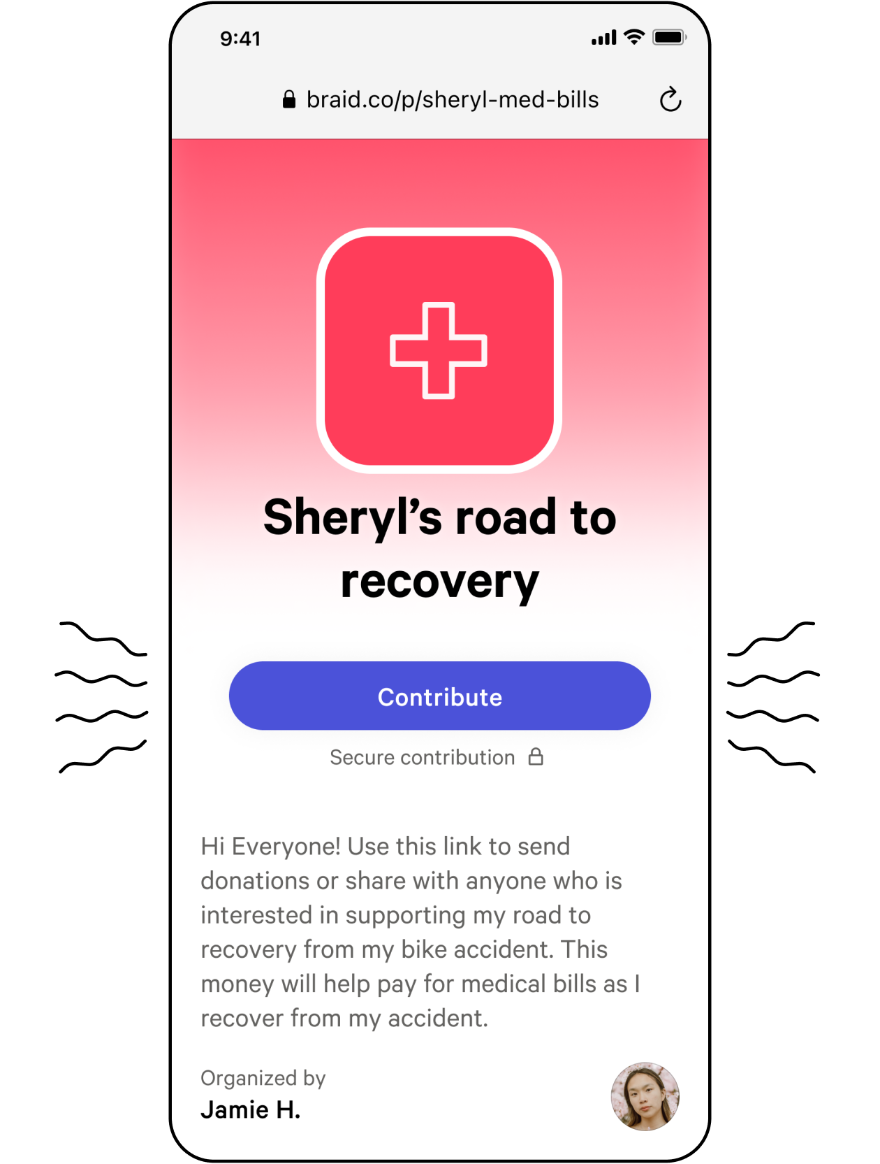 Share the link with friends and family. Donors don't need a Braid account to contribute.