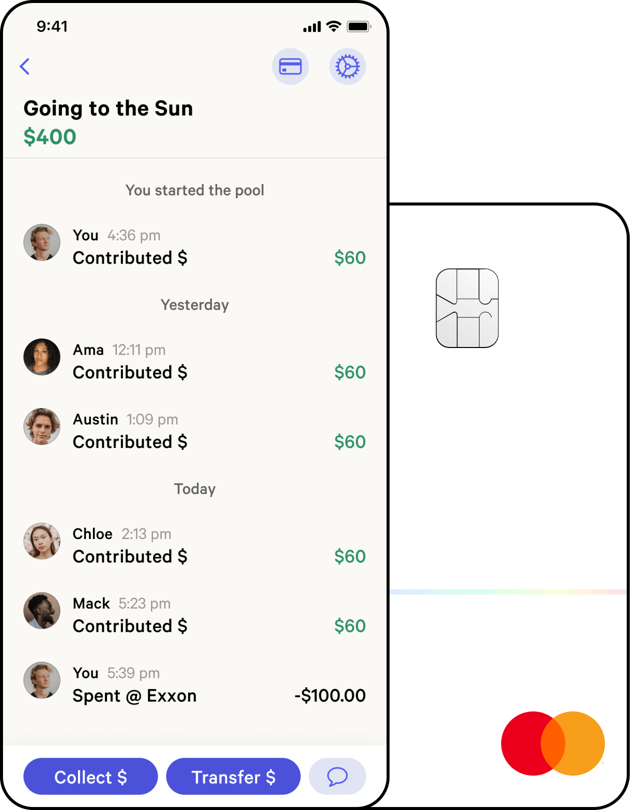 Get spending notifications from your pools, and freeze your debit card anytime in the app.