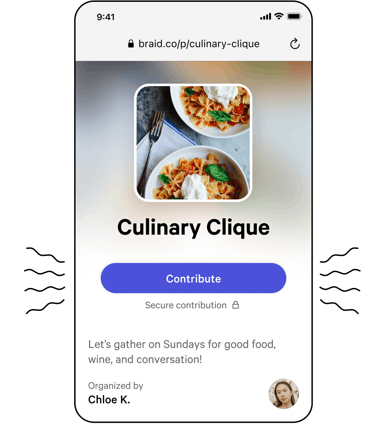 Use money pools for supper club expenses. Braid helps hosts-with-the-most gather contributions for dinner parties so they can have more fun, shop smarter, and budget better.