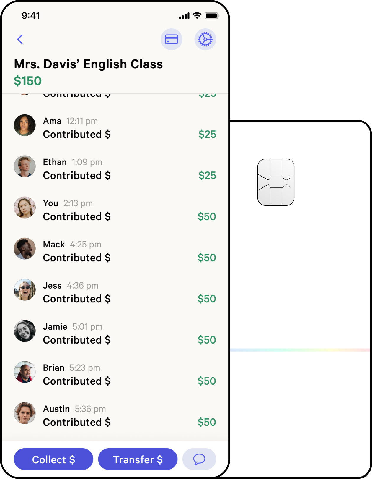 Get spending notifications from your pools, and freeze your debit card anytime in the app.