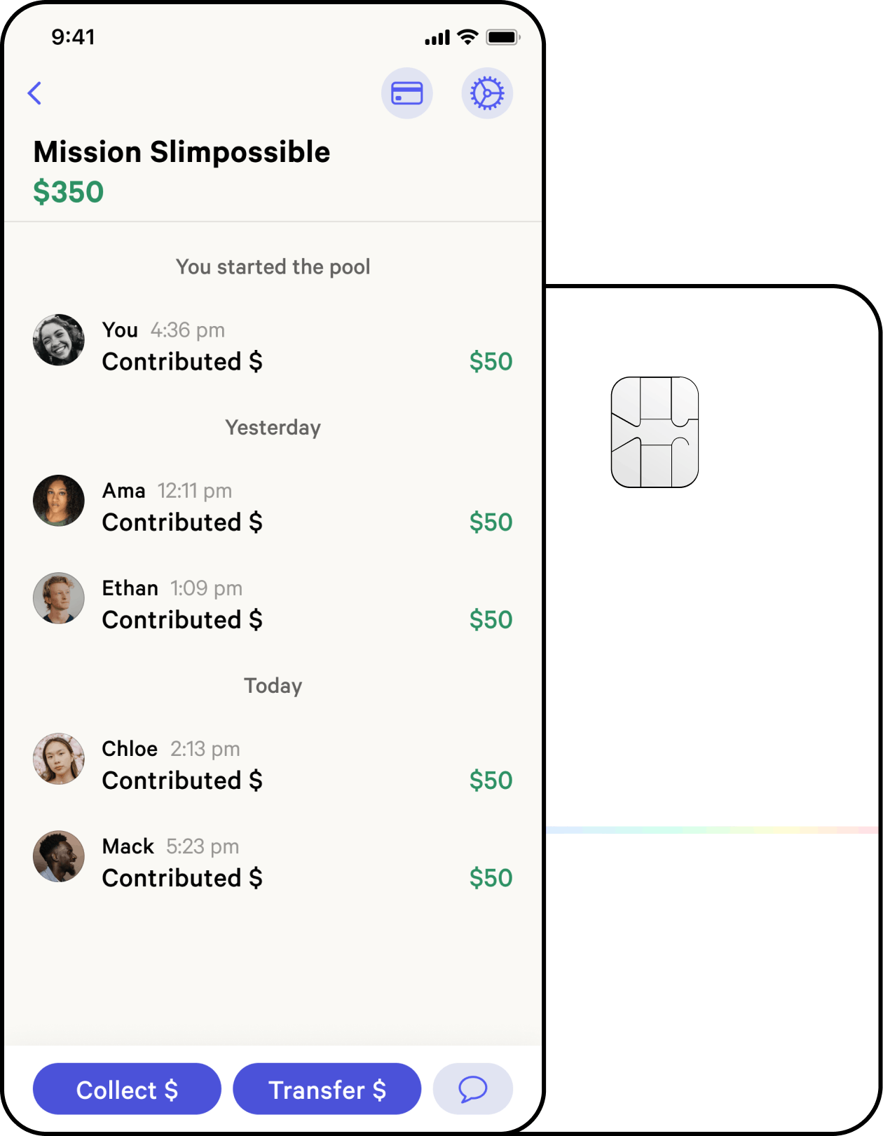 Get spending notifications from your pools, and freeze your debit card anytime in the app.