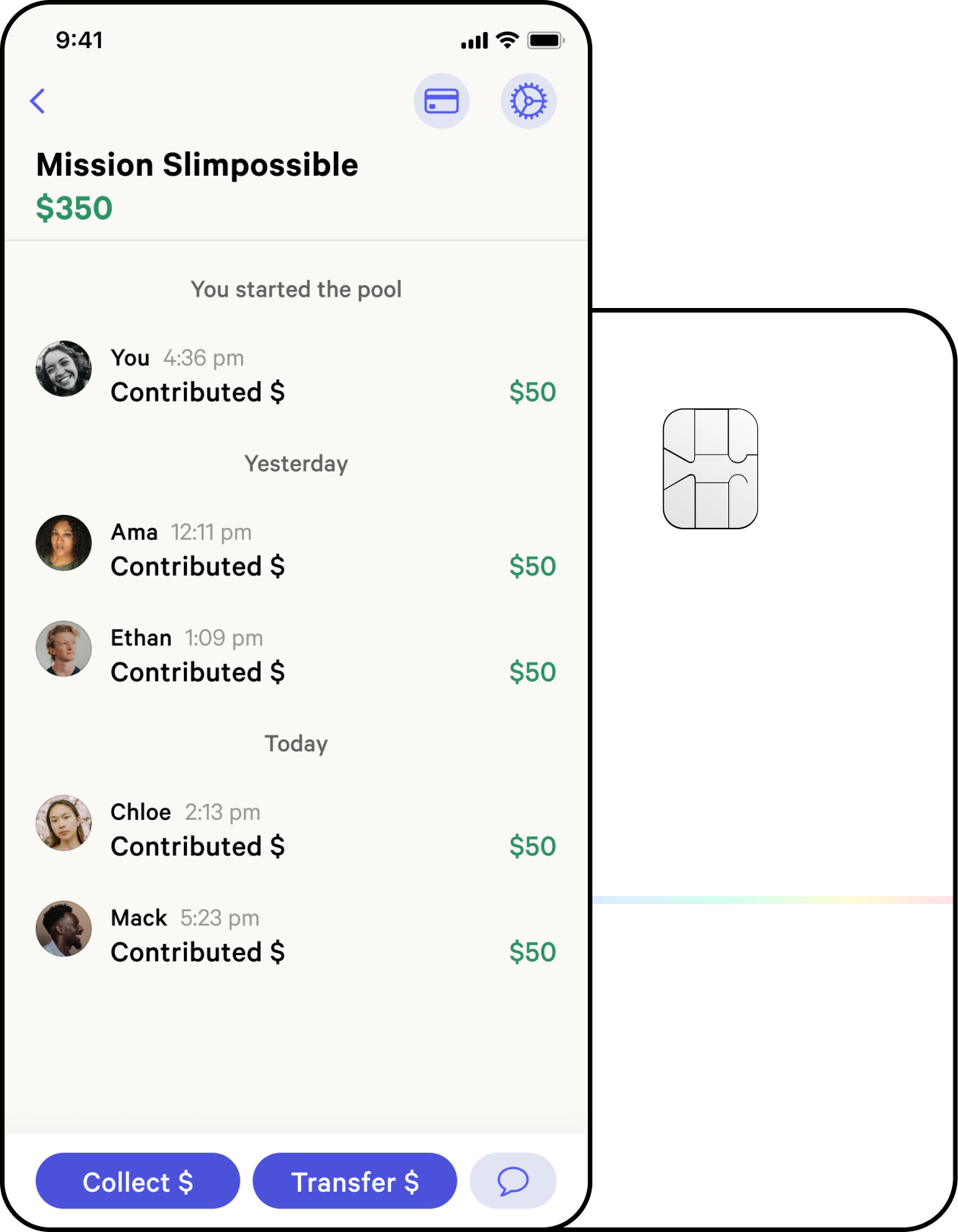 Get spending notifications from your pools, and freeze your debit card anytime in the app.